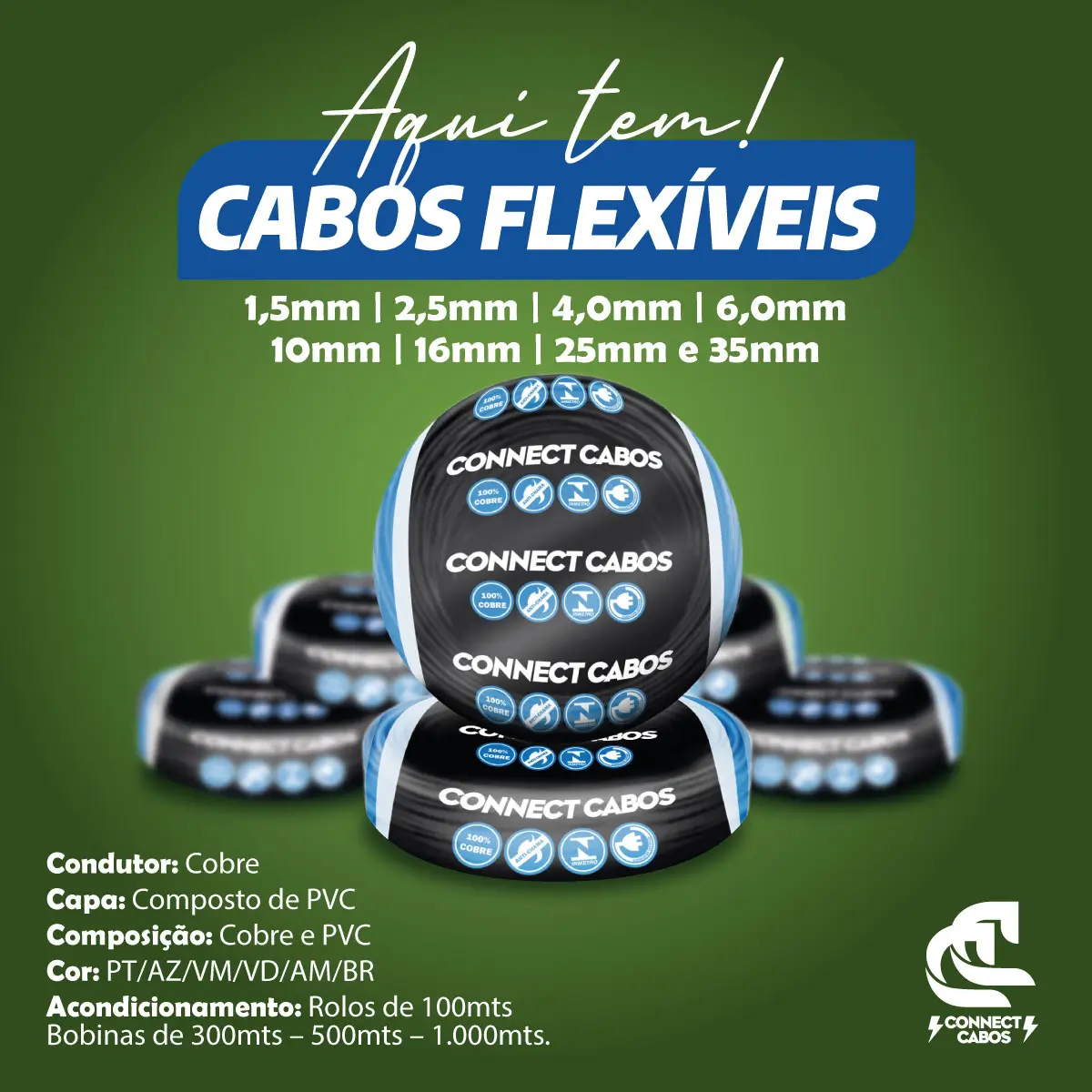 A Connect Cabos é uma fábrica de cabos elétricos e fios, parte de um grupo de empresas 100% nacional, é especialista na fabricação de Fios e Cabos Elétricos e consolidada no mercado garantindo qualidade, inovação e respeito ao meio ambiente.