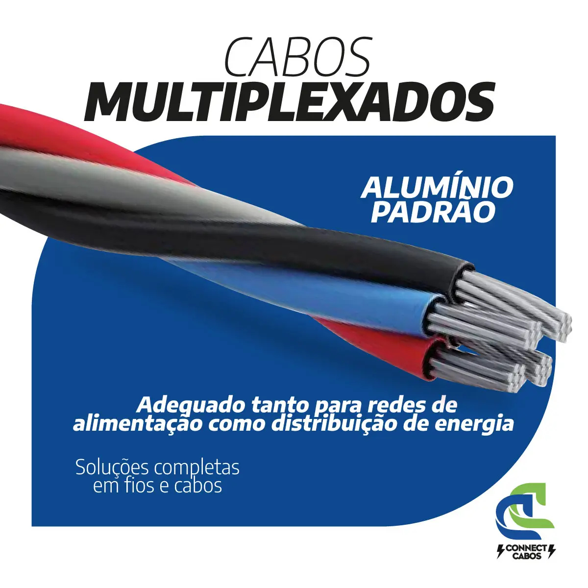 Os cabos para instalações aéreas MULTIPLEX são utilizados em circuitos de alimentação e/ou distribuição de energia em tensões de 0,6/1kV, em instalações aéreas fixadas em postes ou fachadas.